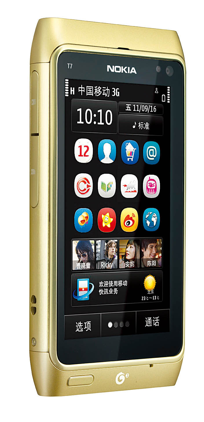 在为TD-SCDMA定制的T7上,诺基亚内置了CMMB地面模块,让Symbian最新版本Anna也可以实现数字移动电视直播。在800万像素的摄像头的两侧,对称放置了两枚LED闪光灯。640×360像素的电容式3.5英寸触控屏幕,分辨率并不高,但相对要省电得多。■ )