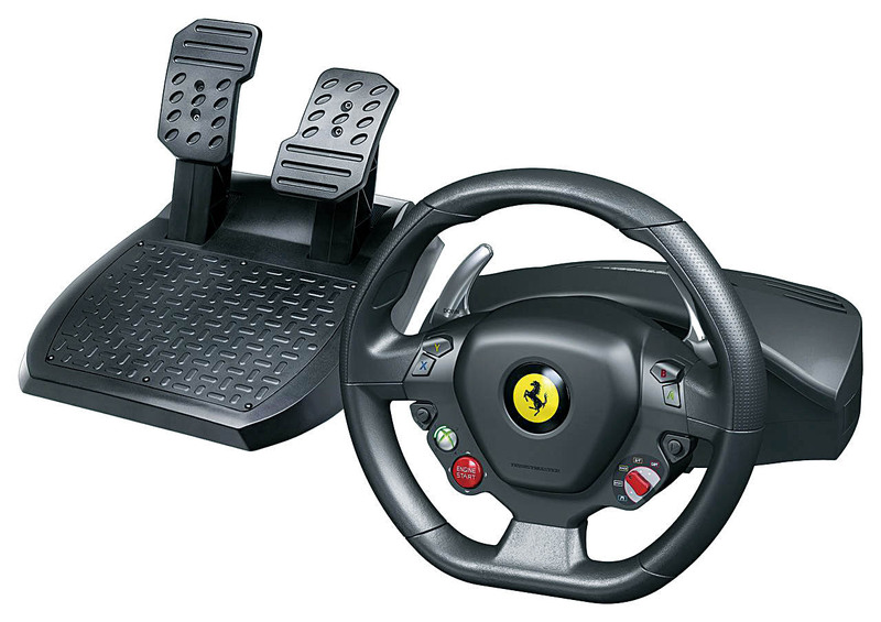 为了在《Forza 4》游戏中能够充分还原法拉利458跑车的操控感,法拉利和微软携手为Xbox360游戏机定制了Thrustmaster方向盘。11英寸直径和快速换挡拨片,完全忠实于法拉利458方向盘的原始形态,并在此基础上附加了Xbox游戏机特有的动作按钮。■ )