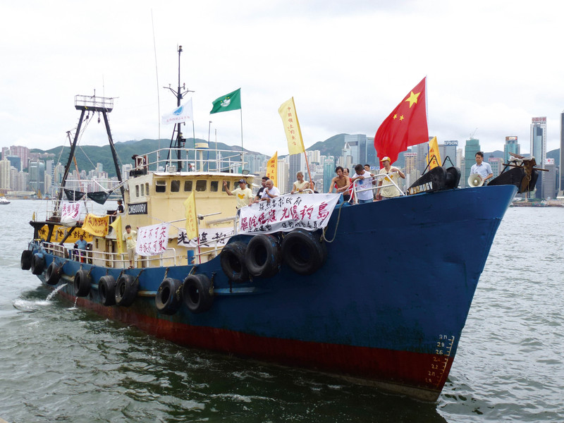 ( 8月15日,香港保钓船“启丰二号”抵达钓鱼岛,部分船员成功登岛。图为“启丰二号”出发时的情形