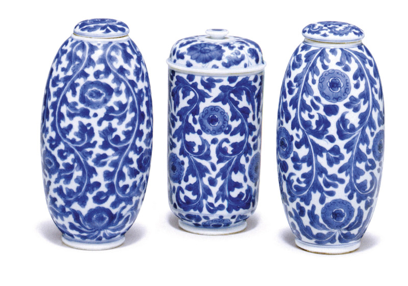 ( 清康熙 青花缠枝莲纹盖罐一组三件 )