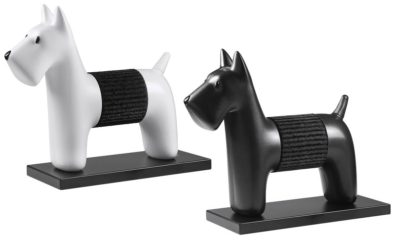 黑色或白色的小猎狗Benny身上绑了一圈的刷子,由天然毛发和聚酰胺制成,适合用来擦拭和抛光各种质地的鞋子。只要按下金属底座上的开关,小猎狗可以随时开始工作,给人带来好心情。