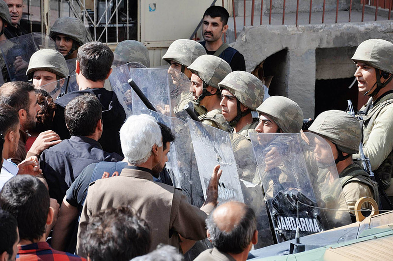 ( 9月3日,库尔德人在土耳其谢尔纳克省街头聚众示威 )