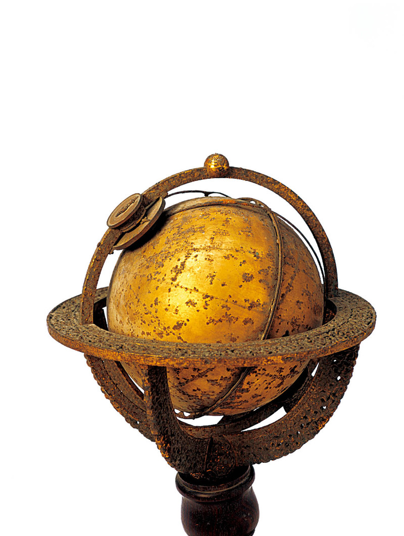 铜镀金天体仪(清·顺治十四年)通高31厘米,地平圈直径31厘米;清宫造办处制