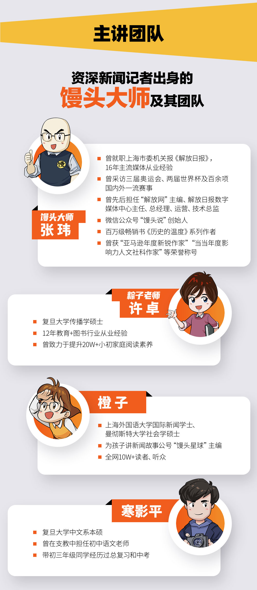 不用担心,主讲团队由资深新闻记者出身的馒头大师及有媒体、教育背景的团队组成。