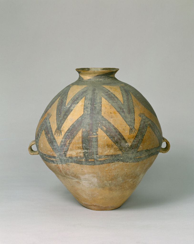 ▲故宫博物院藏 新石器时代 马家窑文化蛙纹彩陶双系罐(使用泥条盘筑技术)