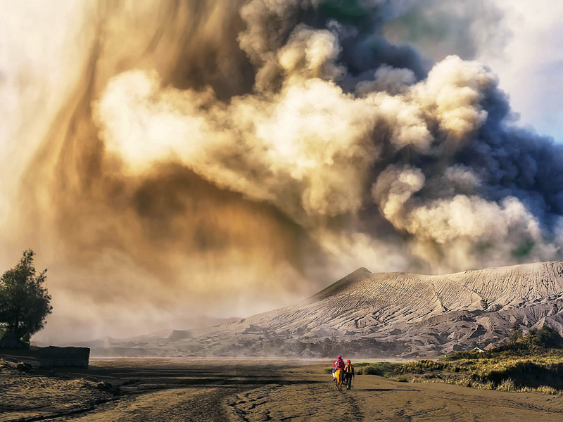 马来西亚吉隆坡45岁男子Ts Kok近距离拍摄的婆罗摩火山喷发的场景。滚滚火山灰喷涌而出遮天蔽日,周围的风景在火山灰的遮盖下宛如披上了神秘的面纱,若影若幻犹如仙境。十分有趣的是,他拍摄当时是和同伴骑在马背上的,他们热衷于探索一些大众旅游景点不为人知的一面。