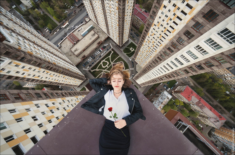 俄罗斯摄影师乔治·朗切夫斯基(George Lanchevsky)为了克服恐高症,在没有任何安全措施的情况下登上世界各地最高的建筑拍摄照片。他攀登过基辅的独立广场、吉隆坡的双子塔、莫斯科的七姐妹大楼等摩天大楼,并站在楼顶上拍摄下一张张令人眩晕的俯拍美景。图为朗切夫斯基在俄罗斯某栋楼的楼顶给朋友拍的照片。
