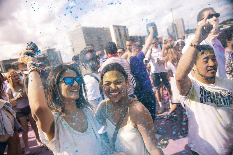 8月13日,伦敦民众在温布利公园(Wembley Park)庆祝胡里节。胡里节起源于印度,举办于初春以庆祝寒冷冬天的远去,有着将亲人染色以庆祝万物复苏的习俗。