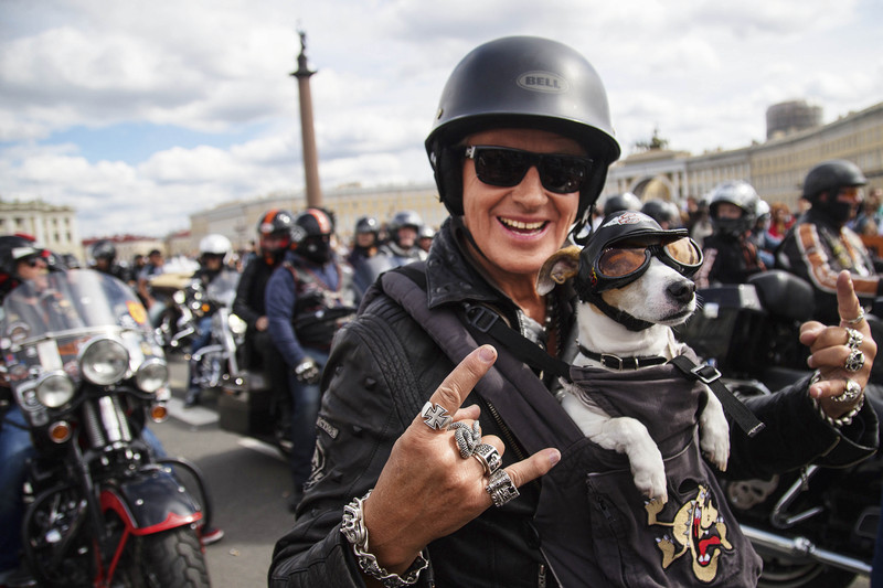 8月13日,数千名哈雷爱好者参加了在圣彼得堡举办的哈雷摩托车大游行。