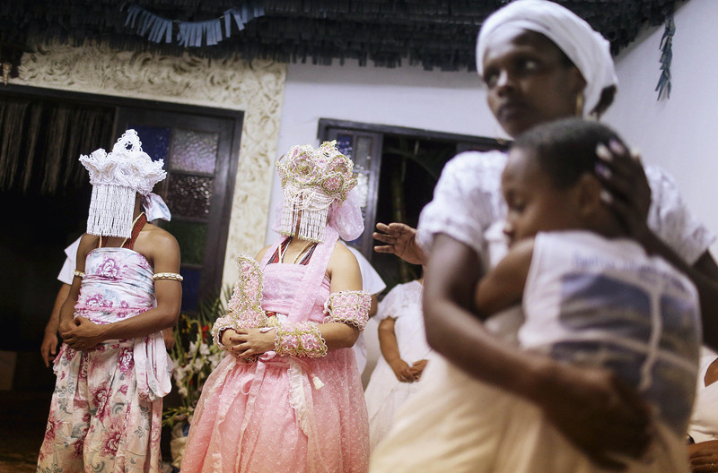 巴西 | 坎东布雷教仪式 12月13日,巴西东南部的伊塔博拉伊市,坎东布雷教信徒举行仪式,纪念海洋女神伊迈佳以及河流、瀑布女神奥舒姆。这种宗教是被贩卖的奴隶们从西非带到巴西的宗教,由于主人们禁止奴隶举行他们的宗教仪式,奴隶们既要保持自己的传统做法,又要显得服从主人,于是就将他们的万物神灵与天主教里的圣徒们一一对应联系起来。例如,将他们的海洋女神伊迈加与圣母联系起来。