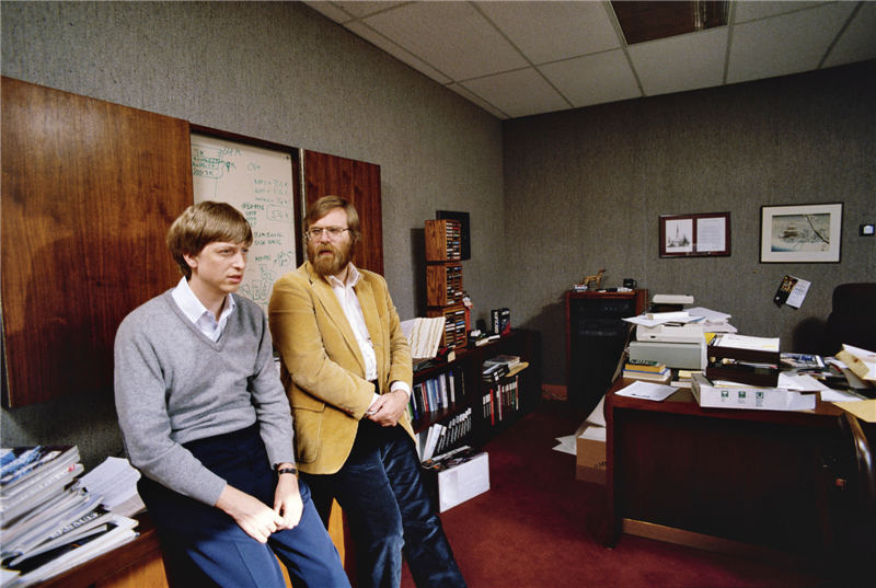 这个故事的男主角比尔·盖茨(Bill Gates)绝对称得上是全球最顶级的极客。他于1955年出生于西雅图的一个富裕家庭,从小喜欢数学,是个编程高手。1975年,不满20岁的盖茨和儿时好友保罗·艾伦(Paul Allen)共同创办了微软公司,主攻电脑软件。5年后,微软和IBM联手,推出了第一款个人电脑操作系统PC-DOS。1985年,微软又推出了视窗操作系统(Windows),垄断了全球90%以上的个人电脑市场。
