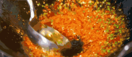 豆瓣和辣椒的融合,破除了纯粹的辣的锐度。把川菜之辣发展出十几种不同分支。新鲜辣椒加入已经发酵半年的豆瓣之中,夏秋季节的三个月里,二者充分结合稳定。温热的瓣子散发出香味,在黑稠的大缸里慢慢演变,辣椒、盐、灰面产生了神奇的化学反应,有了辣椒和豆瓣本身都不具有的油亮和鲜醇。不少川菜馆子为了降低成本,也大量使用红豆瓣,也就是没有经过陈年发酵,以工业化手段保持颜色明艳、发酵时间比较短的豆瓣酱,但是四川人家里用一般以郫县豆瓣,也就是黑豆瓣为主,再加点红油豆豉增加红亮度和香气。我曾经在郫县豆瓣厂采访过两次,得到的答案都是,机器化生产切豆翻搅加速陈化的豆瓣酱,和经过两年半时间手工淘漉自然发酵的豆瓣酱,味道确实不同。