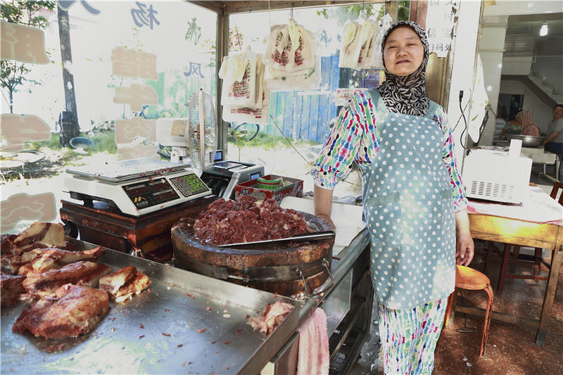 “他说20%的人才懂,那我就只做20%人的生意。”刘大妈66岁,老伴王魁70岁了,卖了30多年肉夹馍。这店里也奇怪,伙计们虽然得不到老板娘的好脸色,却对她非常敬重。人不认真,因此她根本“看不上”他们的馍。因为王魁家的腊汁肉太香,店里专做了腊汁肉臊子面、揪面片,还有比很多专门店做得还好的凉皮。在老板娘看来,“现在的娃,做馍也不好看,肉也不会切,你还能看上,我看不上”。