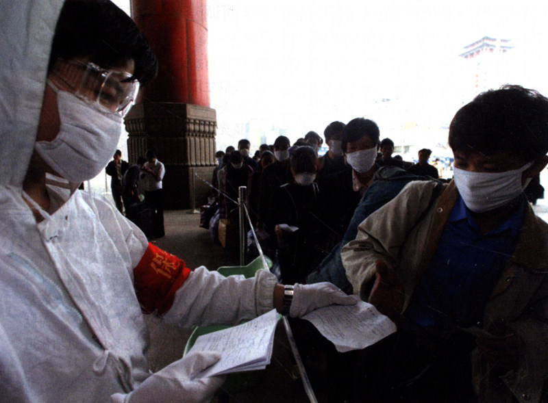 铁路工作人员向乘客发放《健康申报卡》,预防控制疫情传播