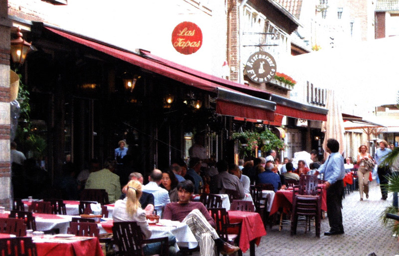 在德国北莱茵一威斯特法伦州首府杜塞尔多夫,我住的家庭旅馆有三个主人:老两口和一条大狗。清晨下着雨,我坐在大餐桌旁吃老太太亲手做的早餐,全欧洲属德国人对早餐最为重视。老人盛情推荐各种口味的奶酪片,还有掺了火腿的,可惜我吃不惯。不过咖啡的味道实在好极了。