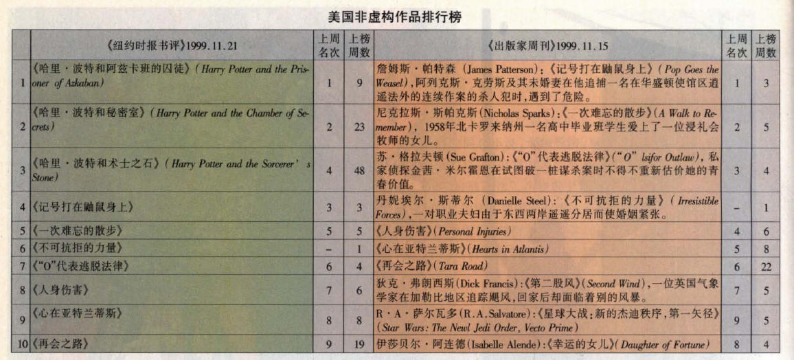 在本期的7部新作中,至少有两部的作者是我们熟悉的,她们都是女作家。一位是多产又题材广泛的丹妮埃尔·斯蒂尔,另一位则是苏·格拉夫顿,上次她的系列侦探小说上榜时是“M”——连续阅读本刊的读者大概还记得,她以私家女侦探金茜·米尔霍恩为主人公的系列作品,依次以拉丁字母表排列,每个字母都代表一桩案件的名称的第一个字母,本期已写到“0”,代表的是“逃脱法律”。