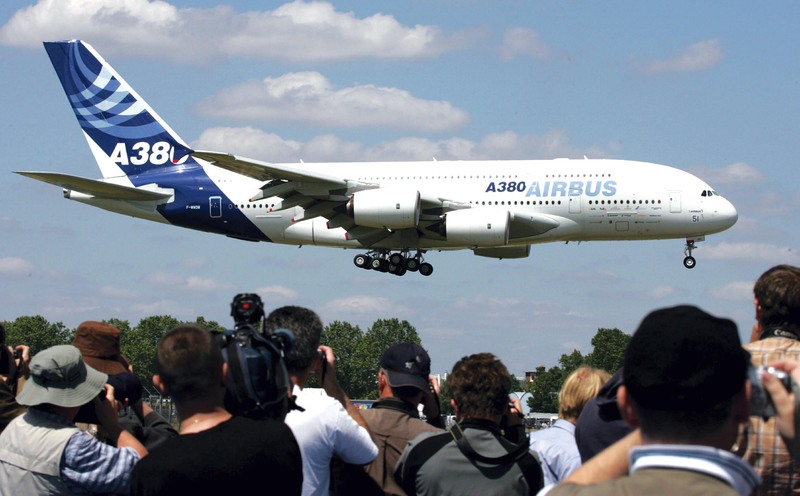 第46届巴黎国际航空航天博览会6月13日在巴黎布尔歇机场隆重开幕。该航展是世界上规模最大、展示最新航空航天技术的盛会,从1951年开始每两年举行一次。今年预计将有30万人前往参观。此次航展为期7天,前4天为交易日,后3天为公众开放日。此次航展上将有许多飞机首次亮相,其中包括法国达索航空公司的“猎鹰”7X型三引擎远程喷气客机、巴西航空工业公司118座的195型地区客机以及美国海流公司G450和G550型商务客机。但最耀眼的新星无疑是空中客车“巨无霸”A380型和波音777-200LR远程客机。 )