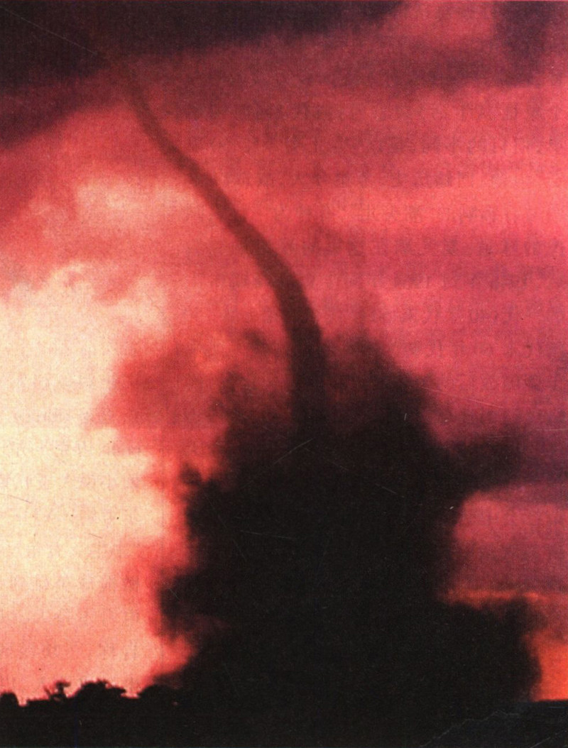 风乍起时,从云里拖出了一缕蜿蜒的卷须,轻柔得让人不会相信它预示着灾难。但紧接着,卷须中吐出了几个漏斗一样的涡漩,随风急促地扭动起来,跳起了死亡之舞。这时,罗伯特·大卫琼斯坐在同伴驾驶的汽车后座上,正在堪萨斯州汉斯顿附近一条泥泞的公路上颠簸。他焦急地望向窗外,看到飞旋的涡流吐出飞沙走石,漫卷着向这边扑来。就像野兽有时会反扑它的猎手,大卫琼斯紧张地意识到,他几天以来追寻的飓风正向他近逼。