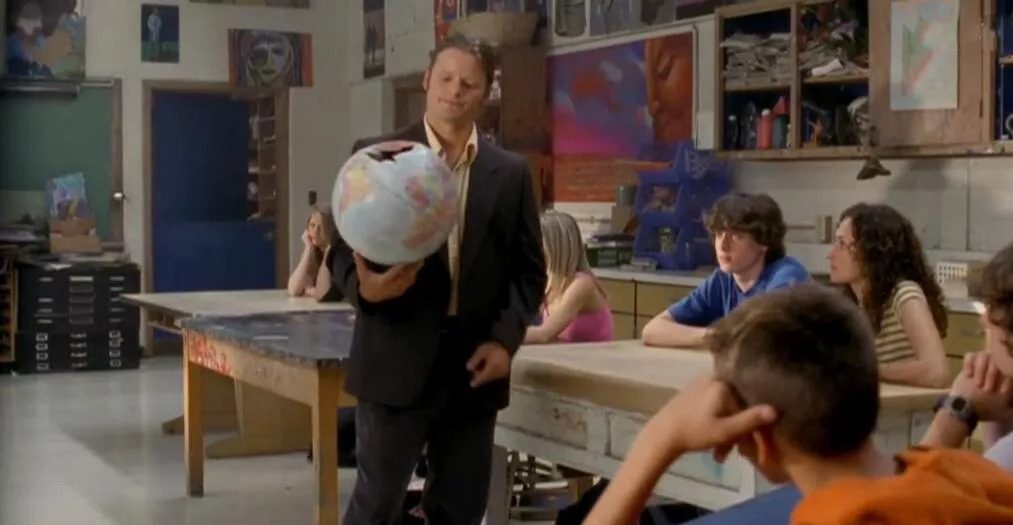 冰球运动员们正枕着胳膊安然地睡着,连那些一向积极的好学生也只是无动于衷地按着自动铅笔,笔芯伸出一大截刺入空气中,像极了医院的注射器针头。他们举着笔隔着过道相互打斗,轻声喊着“警戒”,语气充满了不屑。