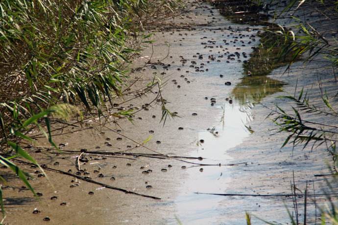 每年开春以后,水暖鸭知,枯苇吐翠,在江河口岸以及海边宽阔的滩涂湿地上,总有一群灵动有余安静不足的娇巧身影,如约而至地悄悄钻出各自休眠蛰伏的洞穴,循着和煦温暖的三月阳光,或吹风或觅食,慢慢的开始忙忙碌碌地活跃起来。那便是螃蜞。