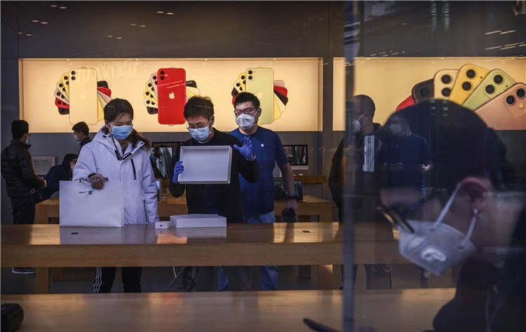 2月18日,北京一家苹果商店恢复营业。中国一季度消费萎缩,将对全年GDP带来明显拖累