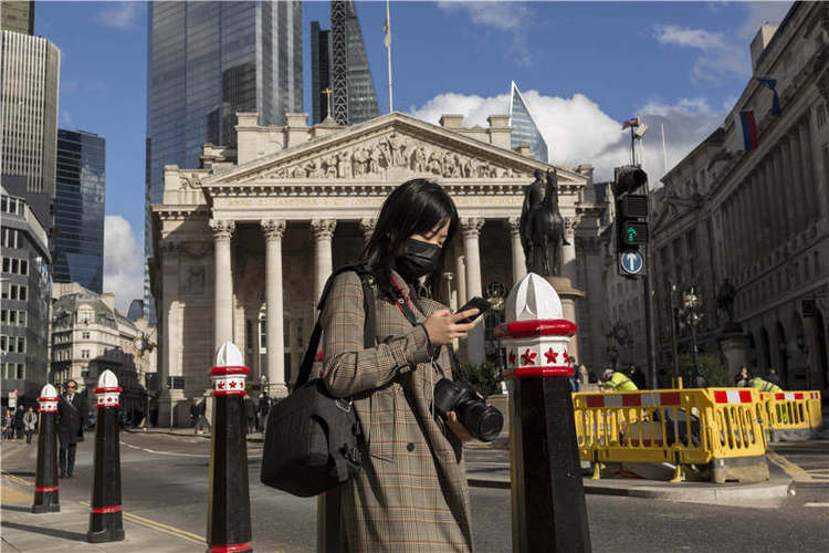 3 月11日,英国财政大臣苏纳克提出了一项新预算,其中包括用于抗疫的资金、减轻企业负担等。图中背景为伦敦皇家交易所