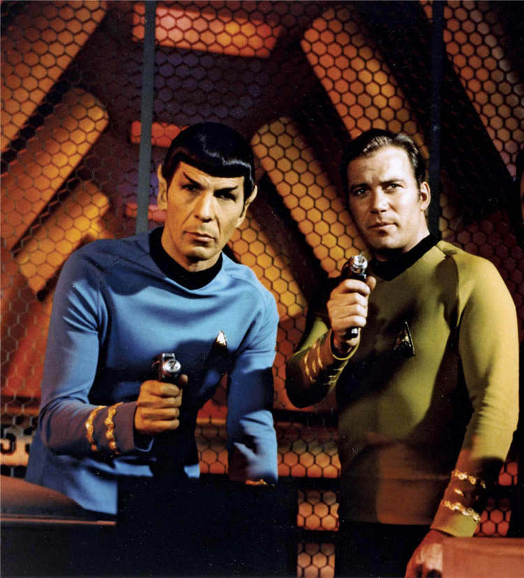 电视剧《星际迷航》剧照(1966年),演员伦纳德·尼莫伊 (左) 和威廉·沙特纳(右)