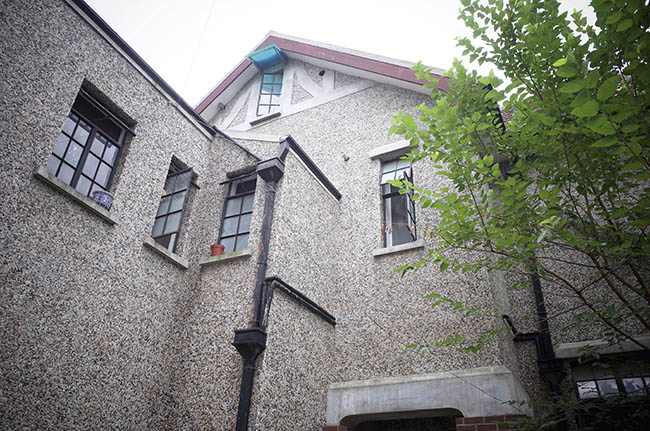 为了不让这房子抛头露面,极其讲究私密性的老上海人跟政府讨价还价,只能把“傅雷故居”的介绍牌贴在里面,于是你需要有机会走进铁门,凑上那座假三层、褐色粘卵石铺面的德式别墅,才看见一块失色的铜牌安在一根方柱挑空的门廊底下,因为门廊朝西洞开,檐下光照黯淡。