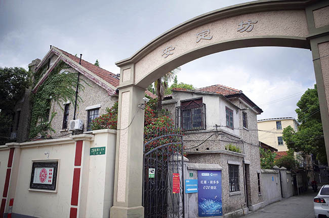 江苏路284弄安定坊的跟前如今新造了条地铁,从地铁口上来,这座小小入口的花园里弄就在手边,一拐进去,5号的黑色铁门就赫然在眼。总共是5幢18单元的联列式洋房,5号稍显不同,不仅装了大铁门,还有一块上海市优秀历史建筑的石牌贴在门边,寥寥几字,任你心照不宣。