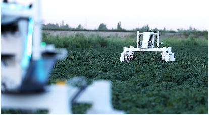 他们穿着防晒风衣、戴着太阳帽,不再“面朝黄土背朝天”,而是手持 iPad,通过无人机、摄像头与传感器进行数据监测。他们用算法规划播种、施肥、病虫害防治、收割流程,自动化的无人车负责运输种子与果实,无人收割机在收获季节完成采摘。整个农场目标是在未来实现 90% 以上的无人化。