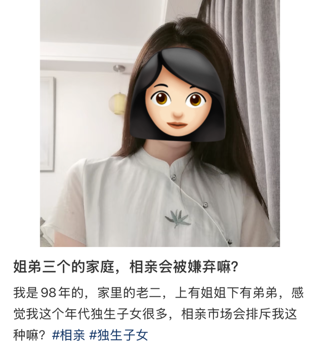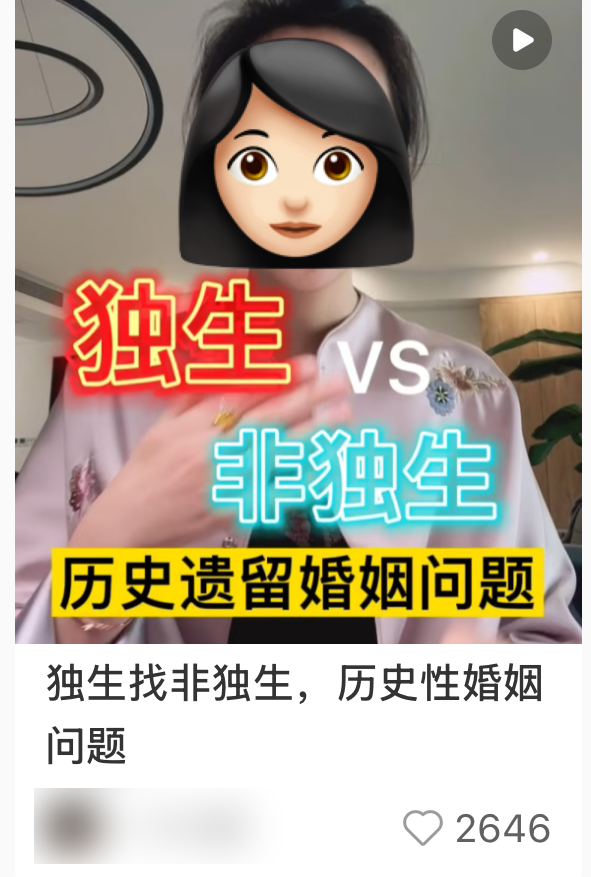 可一旦流入相亲市场,哪怕双方都是学历拉满、有房有车的顶配人中龙凤,“独生”遇上“非独”便会立刻产生“生殖隔离”,只因家庭配置不同,再有利的相亲优势也全成了减分项。