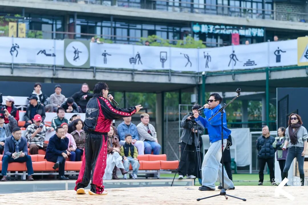看台上,观众慢慢聚拢,有人坐在地上,有人靠着栏杆,有人举着手机跟着音乐晃动。这个原本属于运动和日常聚会的空间,被瞬间点亮成一个天然的开放舞台。场地没有被重新定义,而是被年轻人用当下的节奏重新占据。