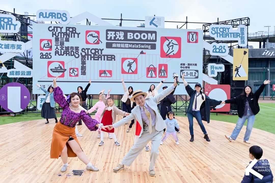 摇摆舞的魅力在于简单、连贯、门槛极低,你不需要技法,只要愿意迈出第一步。而成都和西村的气质也在这一刻被放大:放松、轻盈、节奏自由,带着一点即兴的随性。当最后一个音乐段落结束,舞者向观众致意,看台上自发响起掌声。那掌声不是对“表演”的回应,更像是为自己刚刚找回来的轻松感鼓掌——一种久违的、不用思考、不用端着,也不用在意目光的松弛。