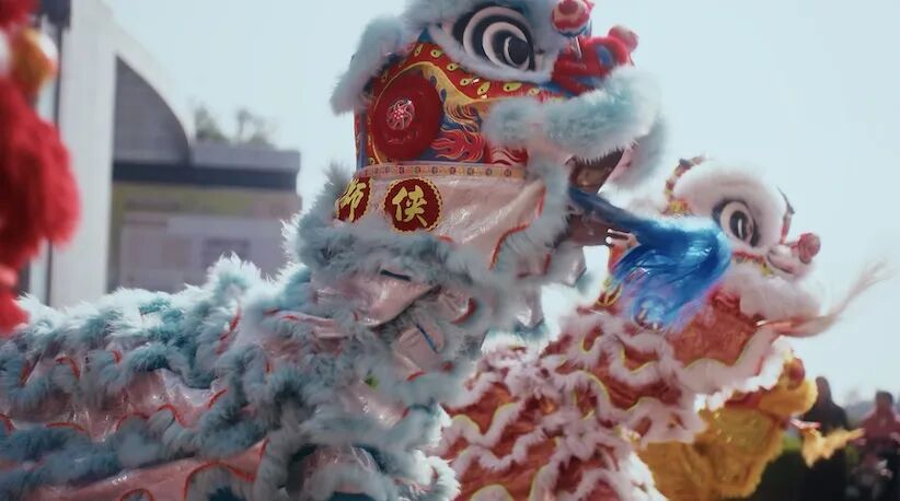 在华为新年照相馆前,锣鼓铿锵,龙狮腾跃。在教练陈慧君的指导下,十几位少年动作整齐划一,额头上沁出细密的汗珠。这里,是另一种形态的“家”。
