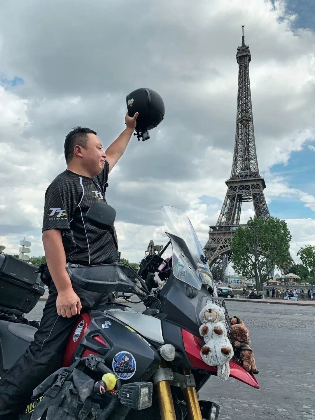 2019年,阎鹤祥骑着摩托抵达巴黎