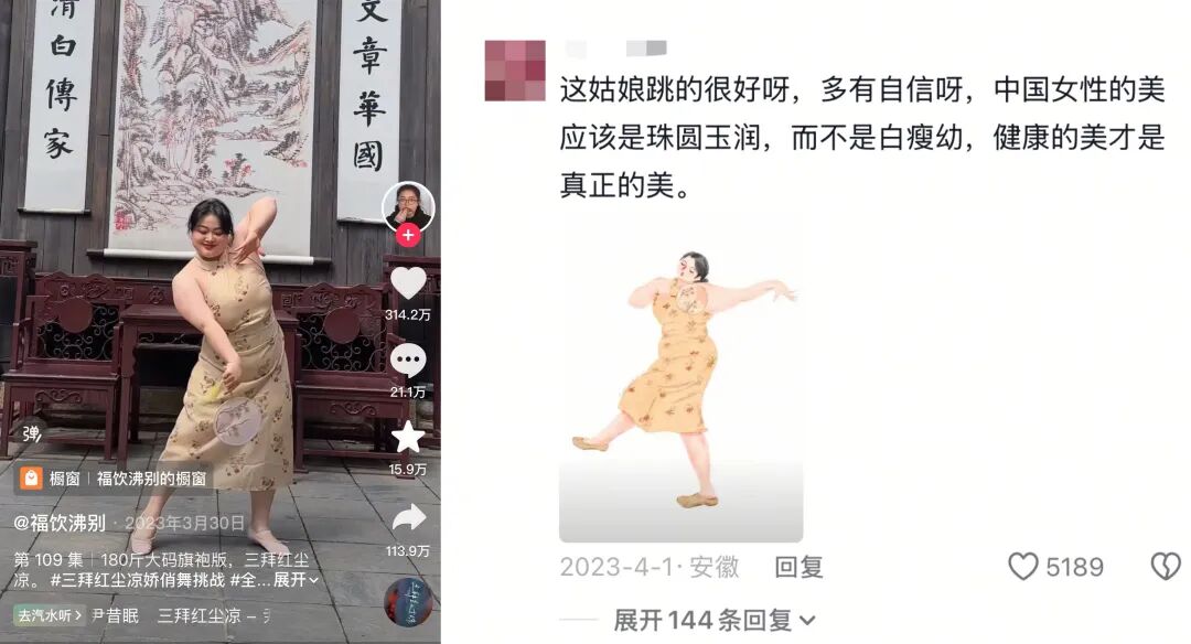 评论区里有人说,“这姑娘跳得很好呀,多有自信呀,中国女性的美应该是珠圆玉润,而不是白瘦幼,健康的美才是真正的美。”