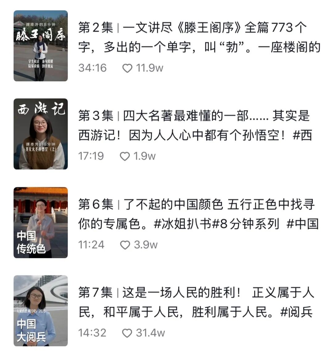 许多创作者为了追逐流量,往往陷入一个误区:认为视频越做越短,就越容易“爆”。但@冰姐扒书 却反其道而行。最开始设定的一分半钟一条视频,她很快就发现,这么短的时间根本讲不透一本书,于是,时长慢慢变成了四五分钟、十分钟,甚至是四十分钟。