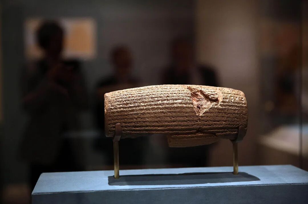 2013年6月20日,“居鲁士圆柱”在美国纽约大都会艺术博物馆展出。圆柱上的铭文曾被巴列维国王称为“世界上最早的人权宣言”(图源:视觉中国)