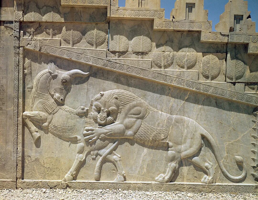 波斯波利斯遗址的著名浮雕“狮子咬牛”(图源:视觉中国)