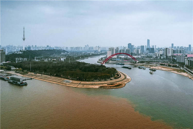 清澈的汉江在武汉龟山附近汇入长江,共入大海